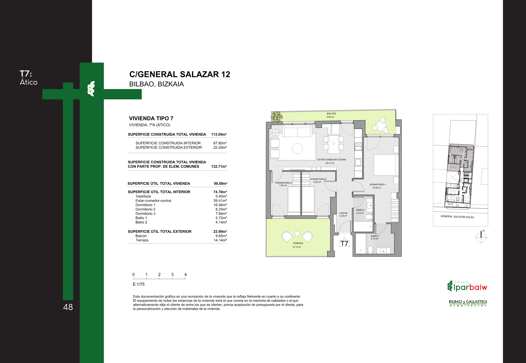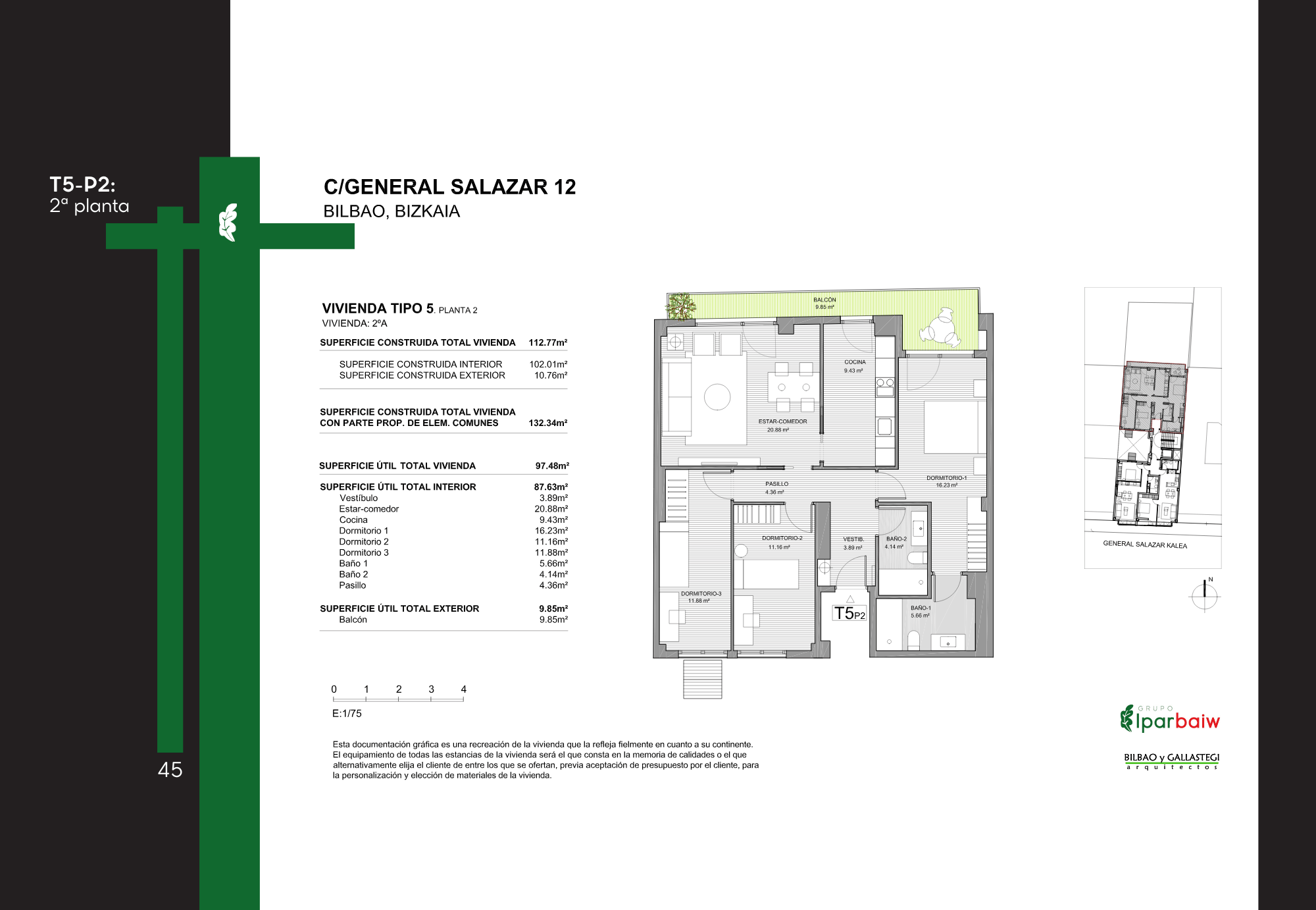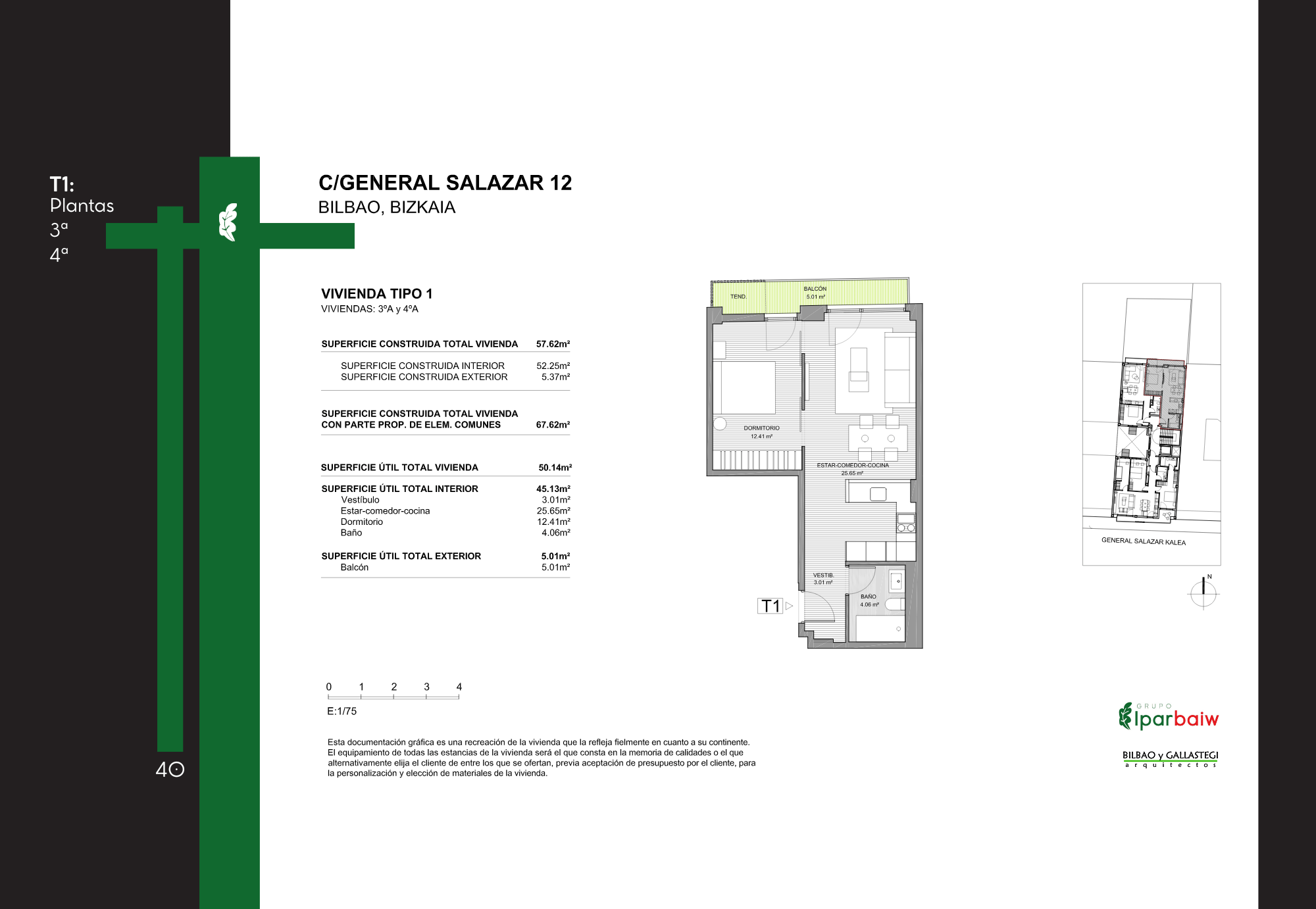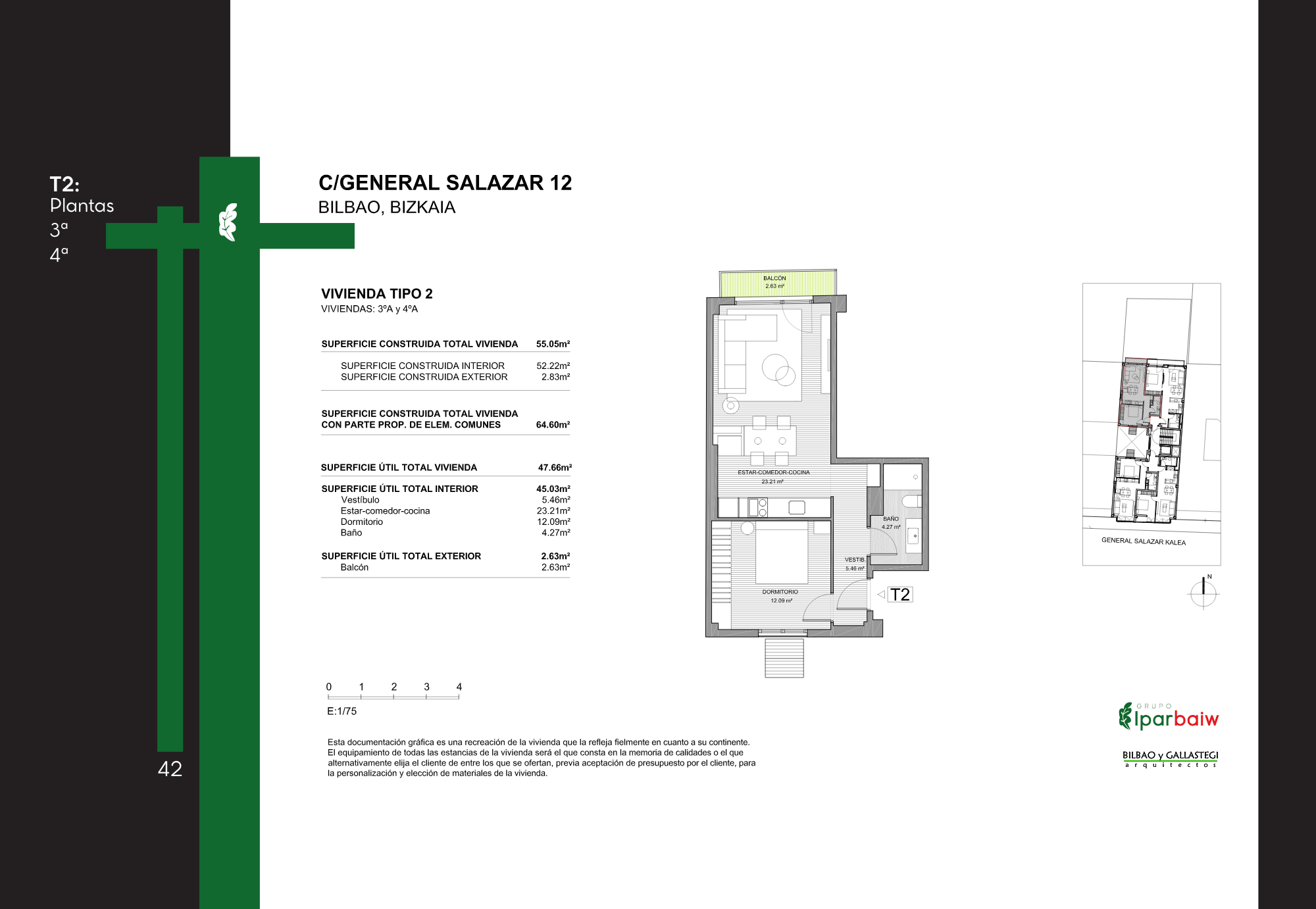 El conjunto ofrece una variedad de viviendas con diferentes superficies y distribuciones, orientadas a cubrir distintas necesidades residenciales. Su localización en un ámbito urbano consolidado de Bilbao permite un acceso cómodo a servicios, transporte y equipamientos, integrándose de forma natural en la trama de la ciudad.