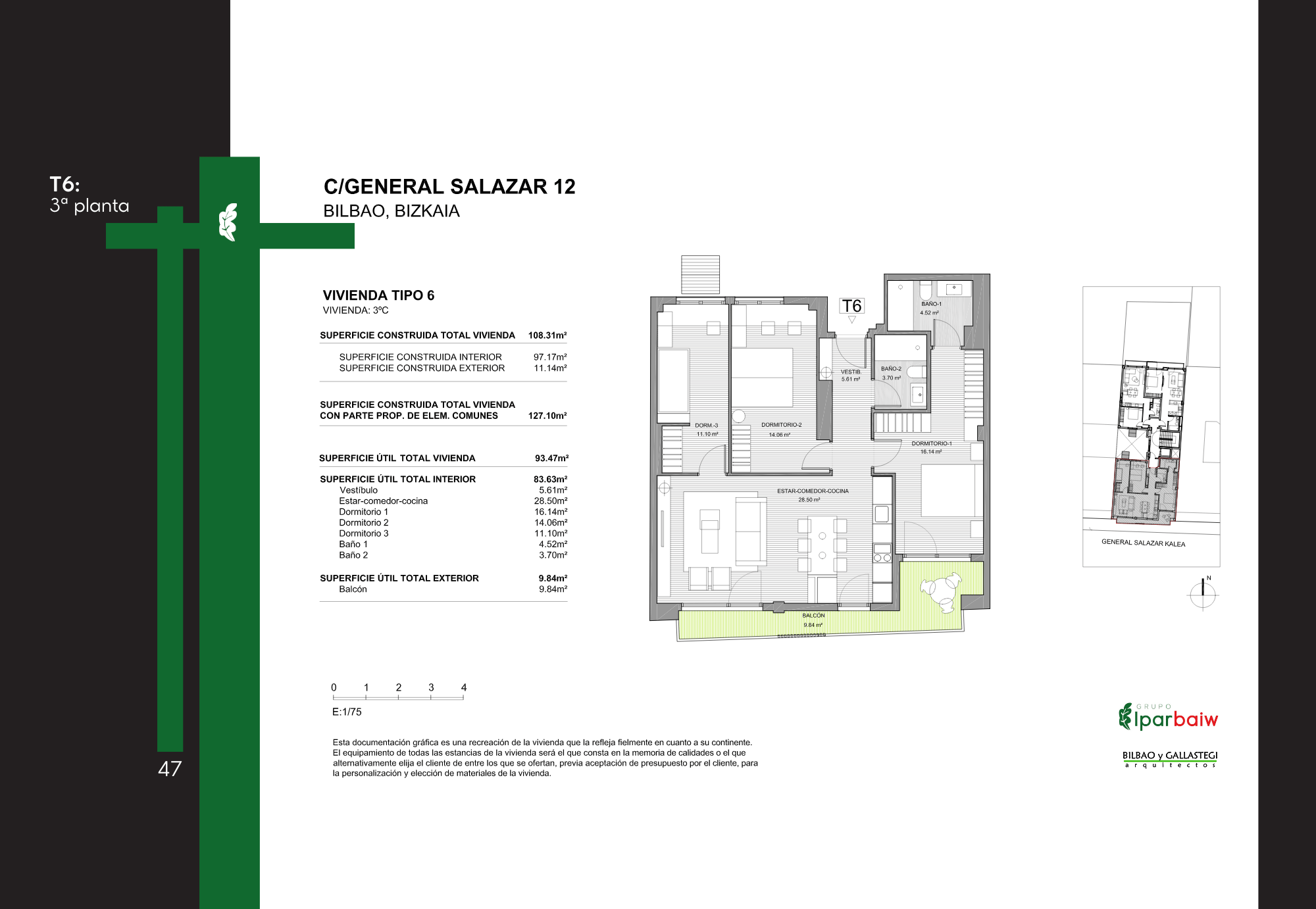 Promoción residencial en General Salazar, 12, Bilbao, compuesta por 22 viviendas de 1 y 2 dormitorios, ubicada en el barrio de Ametzola.